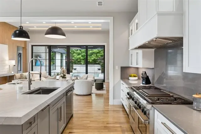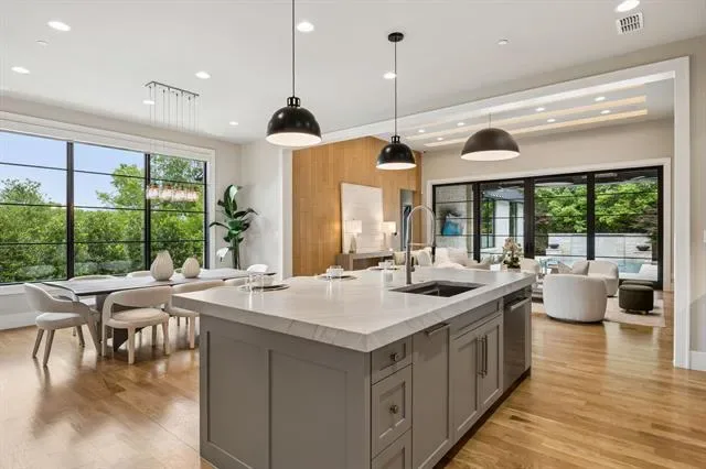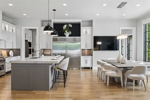 Built-in Features, Built-in Wine Cooler, Cable TV Available, Chandelier, Decorative Lighting, Double Vanity, Eat-in Kitchen, Flat Screen Wiring, High Speed Internet Available, Kitchen Island, Natural Woodwork, Open Floorplan, Paneling, Pantry, Smart Home System, Sound System Wiring, Walk- In Closet(s), Wet Bar, Wired for Data