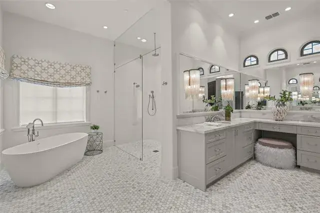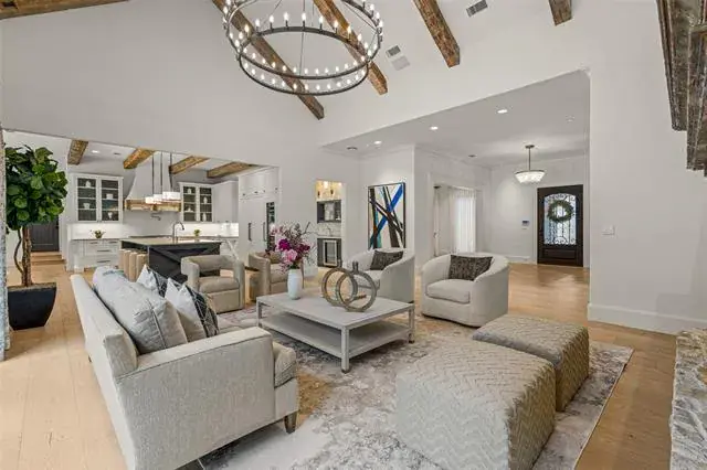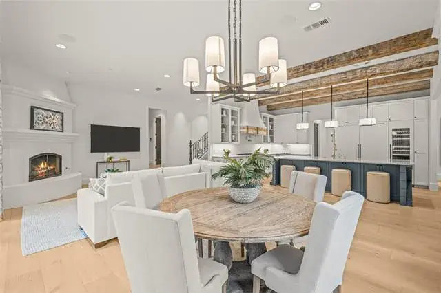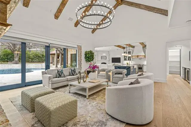Santa Barbara-inspired estate in Vaquero, privately tucked on a cul-de-sac within the coveted guarded and gated community. This 4 bedroom, 4 full and 3 half bath home features a 4-car garage with expanded driveway for additional parking. The gourmet kitchen is equipped with Thermador appliances, quartzite countertops, custom cabinetry and reclaimed warm beams, complemented by all-new Pella windows and doors and designer light fixtures throughout. The luxurious primary suite offers a sitting area with fireplace, while the spa-like bath is finished with Cremo Delicato marble countertops, Calacatta Gold marble floors and a zero-transition oversized shower. Upstairs you’ll find two bedrooms, a spacious game room and media room, perfect for entertaining and family fun. The outdoor oasis includes a NEW sparkling Claffey pool and spa, fire pit, pergola with grilling station and lush landscaping. Premier location with access to Westlake Academy IB World School and the option for a Social Vaquero membership available separately.