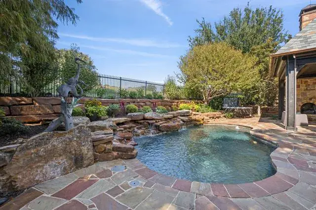 Welcome Home to this Custom Villa in the coveted Vaquero Guard Gated neighborhood! This exceptional Villa offers the perfect blend of luxury, elegance, privacy &' functionality—all set on the scenic 8th fairway of the acclaimed Vaquero Golf Course. Enter the serene Courtyard to find a thoughtfully updated interior featuring warm wood flooring, designer finishes, and an expansive open floor plan that is ideal for both everyday living &' entertaining. The stunning custom Kitchen is a chef’s dream, complete with abundant cabinetry, leathered countertops, a full-sized + oversized working SS sinks, Viking range + Sub-Zero refrigerator. The open Bar area with floating shelves + a show-stopping custom temperature-controlled glass Wine Room elevate the space with effortless sophistication. Step into the spacious Family Room with cast stone fireplace and lovely backyard views. The well-appointed Executive Study offers a tranquil to work. A versatile downstairs Media Room (or second office) makes this a flexible layout. Upstairs, enjoy a full Game Room with wet bar, two private Bedroom suites + an expansive walk-in Attic with garage lift access. Outside find into your own private resort. The lushly landscaped backyard boasts a sparkling pool, cascading waterfall, separate spa, covered outdoor living area, and full outdoor kitchen—all backing a peaceful fairway with no compromise on privacy. The one-of-a-kind garage setup offer an oversized 3-car garage w workshop, additional storage, hot &' cold water hose bib, garage lift system + a separate detached Golf cart-sports car garage. Three brand new HVAC units + recently replaced H20 heaters make this home move-in ready!! JUMP the GOLF WAITLIST to Priority Status – Buyer must be approved through the club. A rare opportunity to own a truly special home in one of DFW’s most exclusive communities. Schedule your private tour today and experience the Vaquero lifestyle at its finest. Students can attend Westlake Academy or Carroll ISD!!