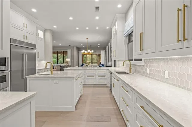 Stunning fully renovated Villa by Veranda Designer Homes in the exclusive gated and guarded Vaquero Club. This 4-bedroom masterpiece showcases a perfect transitional design featuring a completely reimagined kitchen with quartzite countertops, opened walls, new hardwood floors and designer lighting throughout. Enjoy a cozy family room with new custom sliding doors that open to the outdoors and a striking new fireplace wall adorned with backlit quartz and custom cabinetry, the perfect blend of warmth and modern elegance. The executive office impresses with automated glass doors and a custom cooled wine wall system and sleek cabinetry. Step outside to your private backyard oasis with a sparkling pool and spa, complete with a new heater and pump, all new landscaping, irrigation system, and landscape lighting for an elevated evening ambiance. Vaquero Club Golf Membership available with purchase. SKIP the waitlist! Zoned to Westlake Academy IB World School or Carroll ISD.