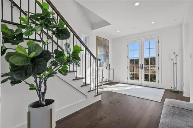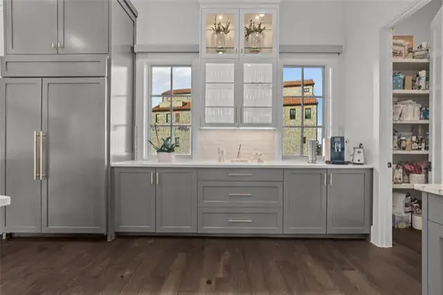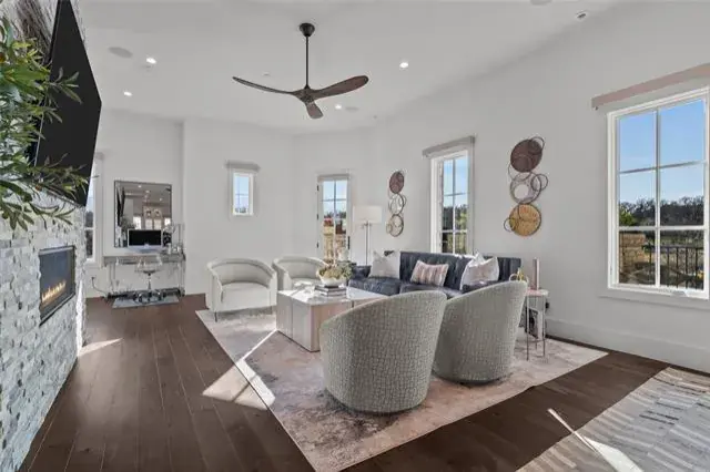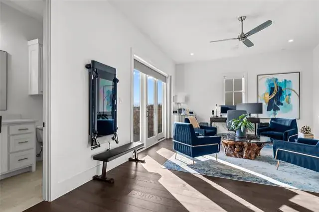 Welcome to true luxury in the Entrada! This exceptional four-story, premium corner townhome artfully blends refined architecture with cutting-edge technology and modern convenience. Designed for effortless living, the home features a private elevator, multiple patios, and breathtaking views from every level. Enhanced with a Control4 Smart Home system, enjoy integrated control of lighting, climate, security, and whole-home audio with premium speakers. From the moment you step inside, rich hardwood flooring, smooth-finish walls, custom designer lighting, and a striking focal feature set the stage for timeless sophistication. The gourmet kitchen serves as the heart of the home, showcasing Sub-Zero and Wolf appliances, custom cabinetry, premium countertops, a statement backsplash, reverse osmosis water system, and whole-home water filtration, blending luxury with everyday wellness. Each level is thoughtfully designed for comfort and style, featuring plantation shutters on the 1st and 3rd floors and electric shades on the 2nd and 4th floors for optimal privacy and light control. Expansive windows and multiple outdoor terraces flood the home with natural light while highlighting ENTRADA’s European-inspired architecture. Outdoor living is elevated in the private courtyard with artificial turf, ambient lighting, and built-in speakers, ideal for entertaining or relaxing. The garage continues the home’s attention to detail with epoxy flooring, built-in racks designed for efficient organization and expanded storage capacity. Additional upgrades include an ultraviolet HVAC purification system for enhanced air quality throughout. Zoned to top-rated Carroll ISD and award-winning Westlake Academy, this residence is just minutes from premier dining, upscale shopping, entertainment, and major highways, with convenient access to DFW International Airport—perfectly balancing refined luxury living with global connectivity. Welcome home.