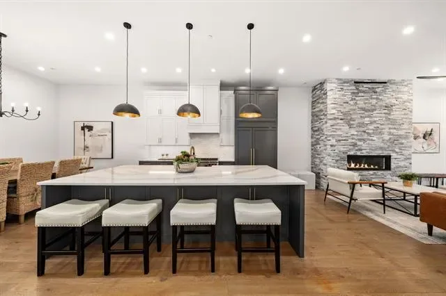 Built-in Features, Built-in Wine Cooler, Cable TV Available, Cathedral Ceiling(s), Chandelier, Decorative Lighting, Dry Bar, Eat-in Kitchen, Elevator, Flat Screen Wiring, High Speed Internet Available, Kitchen Island, Loft, Natural Woodwork, Open Floorplan, Paneling, Pantry, Smart Home System, Sound System Wiring, Wainscoting