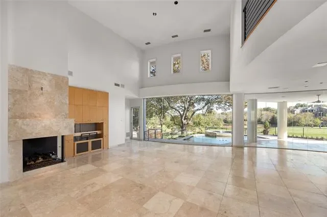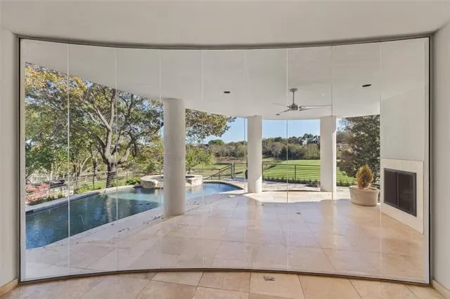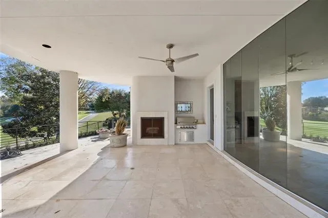 Overlooking the 4th green at Shady Oaks, this striking contemporary home features dramatic glass walls, open-concept living, and breathtaking golf course views throughout. The downstairs primary suite includes a private sitting room, while a flexible floor plan offers a game room that could easily serve as a fourth bedroom with a full bath. All bathrooms are ensuite, providing comfort and privacy for every bedroom. A spacious covered patio with an outdoor fireplace and built-in grill creates the perfect setting for entertaining or relaxing while enjoying the serene surroundings.