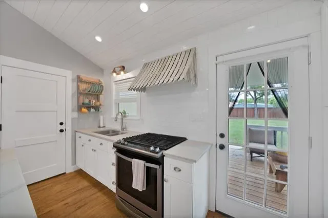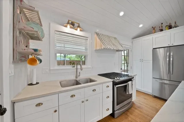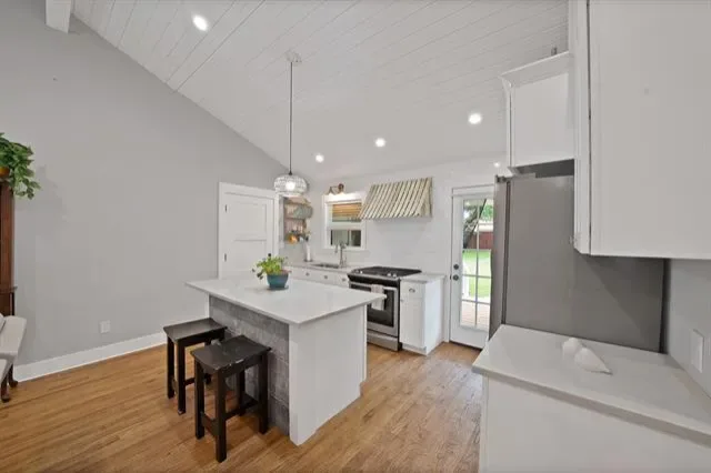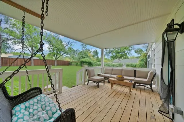 If you are looking for an updated move in ready home, on a quiet dead end street, with a 1940’s curb appeal this is the one! When you pull up to the house you notice all the mature trees and landscaping on the oversized lot’s. When you walk in the front door and your eyes are drawn down to the hand scraped wood floors then up to the vaulted ceilings, with the painted tongue and grove ceiling. The kitchen is light and bright with a large island, gas range, ample cabinetry and plenty of work space. The kitchen sink has the perfect view of the oversized backyard and large covered porch. The living room is a warm open space that is centered with a gas log fireplace and mantel which is surrounded by natural sunlight coming in from all the windows. The bathroom in this home has been upgraded and offers a large walk in shower and a counter height sink with a sitting area good for anyone’s needs to make mornings easier. The Primary and the Secondary Bedrooms are ample in size and they both offer a large walk in closet which helps with extra storage. The washer and Dryer connections are on the end of the garage where there is space for more storage and still have plenty of room for a vehicle. The large covered back porch is a perfect place to go sit and enjoy the porch swing while you relax. The oversized well manicured backyard has endless opportunities since this home sits on 2 lots. This home has so many upgraded details that make it feel spacious, warm and inviting. You don’t want to miss this one of a kind find in Westworth Village!