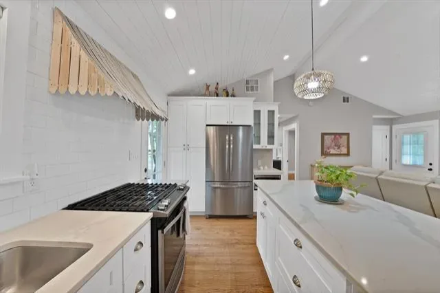 Built-in Features, Kitchen Island, Open Floorplan, Vaulted Ceiling(s), Walk- In Closet(s)