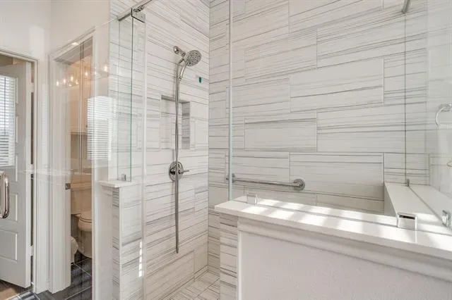 This well-maintained townhome in the gated Crossroads community offers a long list of updates, including new hand-scraped hardwood flooring throughout, in-glass blinds added to the French doors upstairs and downstairs, updated landscaping with all new sod, new cabinetry and hardware in the laundry room, upper cabinets added in the bathrooms, and floor-to-ceiling built-ins in the upstairs second living area. The kitchen features a center island, pantry, quartz counters, gas cooktop, and a touch-activated faucet. The open layout includes a comfortable living room, dining area, and convenient half bath on the main level. Upstairs, the primary bedroom offers an ensuite bath with dual sinks, a separate shower, and new hand-held sprayer, along with two additional bedrooms, a full bath with added storage, and a laundry room with added built-ins. Additional improvements include grab bars and a chair lift for accessibility. The attached 2-car garage is equipped with an organizational system, including hooks, baskets, and shelving that will convey. Outside, the home offers a covered front porch, upstairs balcony, largest fenced backyard in complex, sprinkler system, and the ease of low-maintenance living in a quaint, gated community close to shopping, dining, and Fort Worth amenities. Seller is removing the chair lift.
