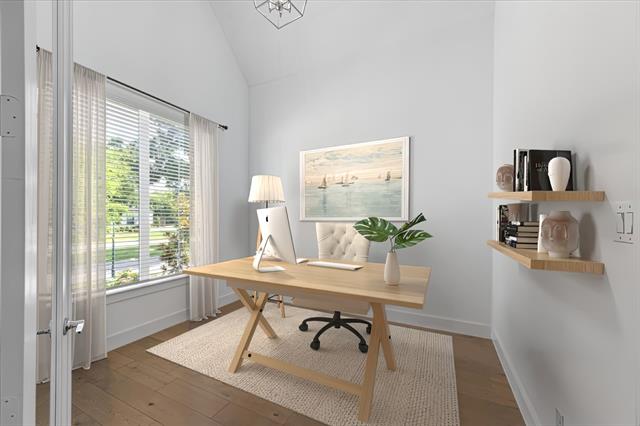 The main-level primary suite offers a peaceful retreat with a spa-inspired bath featuring a soaking tub, oversized shower, dual vanities, and a spacious walk-in closet. A secondary bedroom with a full bath on the first floor provides ideal guest or multigenerational accommodations and is privately situated near the office and dedicated media room.