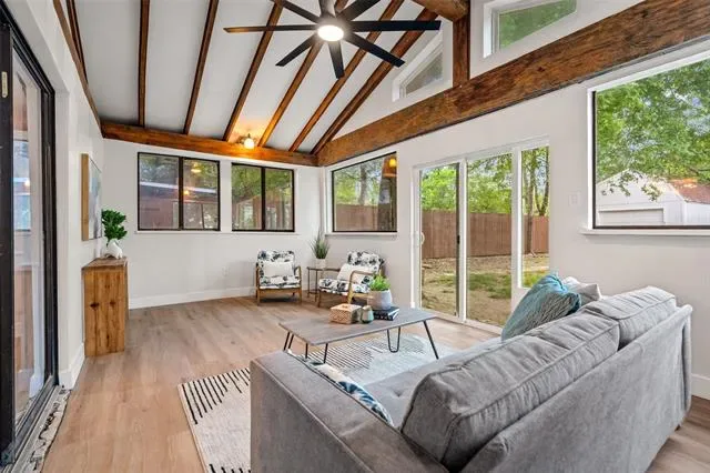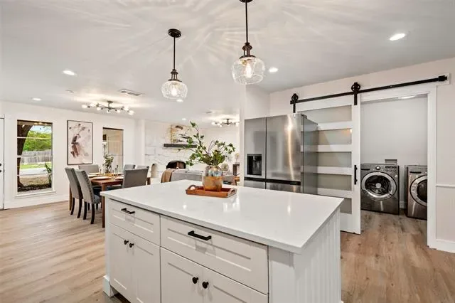 Seller is offering up to $5,000 toward closing costs or an interest rate buy down! Washer, dryer and refrigerator all included. Completely remodeled from the inside out, this beautiful home offers peace of mind with major system upgrades you won’t find at this price point. Fully engineered foundation repair backed by a transferable 10-year warranty, an entirely new PVC sewer system, upgraded copper water supply lines and a completely updated electrical system. Newer roof system featuring fresh decking and architectural shingles. Inside you’ll find a thoughtfully curated design blending timeless materials with modern sophistication highlighted by a stunning kitchen with rose gold quartzite countertops, custom real wood shaker cabinetry and a full suite of appliances. Both bathrooms have quartz countertops and whole house has refined finishes with LifeProof luxury vinyl flooring offering durability and a clean high-end look. Designer lighting and a new sliding glass patio door bring warmth and natural light into every space creating an inviting flow for everyday living and entertaining. The shop out back and exterior, interior of the home has been freshly painted. Sitting on over 0.2 acres, the property also features a completely new stained fence and a large shop with full electrical already run to it making it perfect for storage or a workshop. This is an incredible deal for the level of upgrades and value being offered! Schedule your tour today!