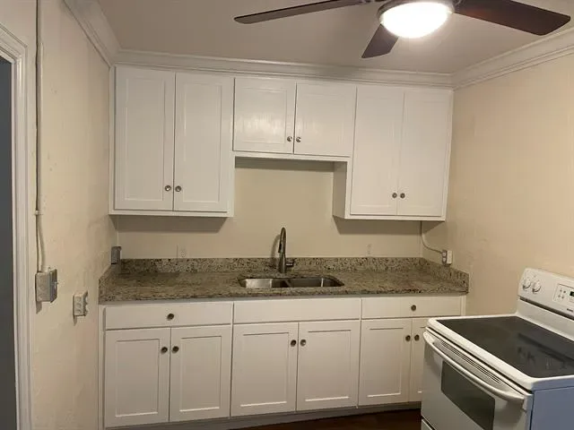 This house, situated on a corner lot, was renovated in 2021 with the addition of 360 Square feet which converted the residence into 3 bedrooms and 2 bathrooms. The addition has the primary bedroom with ensuite bathroom, and also includes a separate laundry area and built-in shelving. During the renovation the house was brought up to current building codes upgrading the plumbing to PEX supply lines and PVC drain lines. All new electrical was installed with additional outlets and switches and a 200-amp service panel. All windows were replaced with Low-E double pane single hung windows and the roof was replaced. A new dual filtration HVAC system with programable thermostat and tankless water heater was installed. The house is now 100% electric (no natural gas). Other features include tile flooring throughout, five ceiling fans with light kits, custom kitchen cabinets and granite countertop, fully tiled bath tub surround in both bathrooms, venetian window blinds, six foot wooden privacy fence with gate, large mature trees, and new concrete driveway with entry walk ways. Also included are full sized clothes washer and dryer, glass top range, and refrigerator.