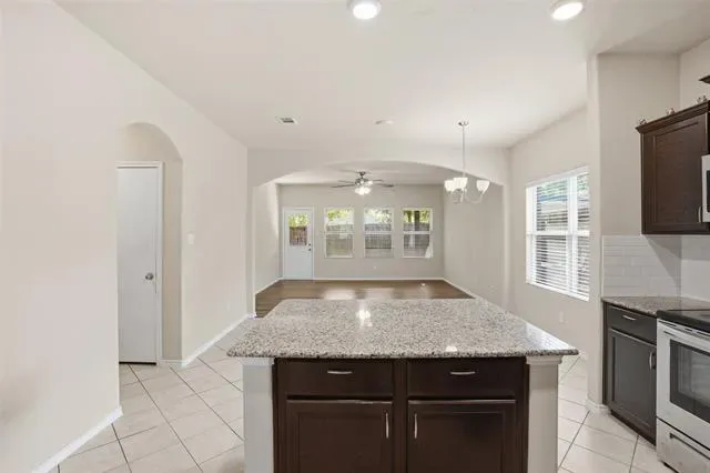 Decorative Lighting, Eat-in Kitchen, Granite Counters, Kitchen Island, Open Floorplan, Pantry