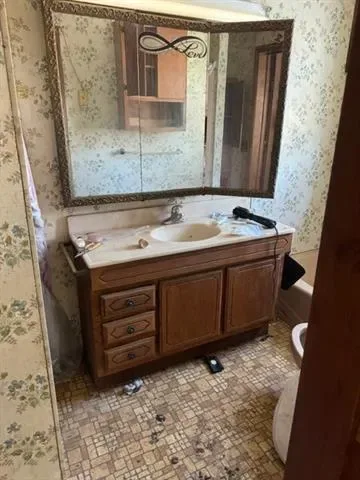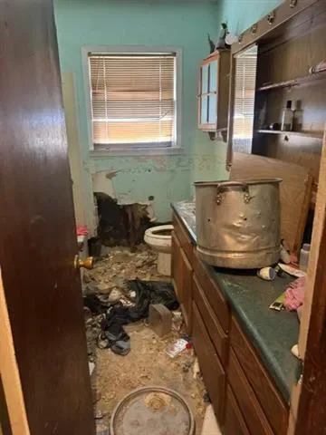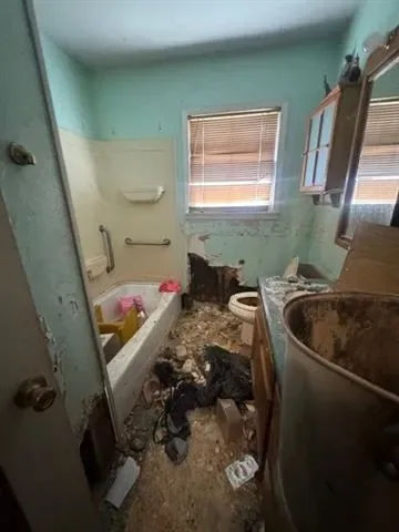 INVESTOR SPECIAL! CASH BUYERS ONLY. AS-IS SALE. This property needs to be completely gutted. Primary bedroom with full bath upstairs. Removing a wall in the living room would open up the floorplan and still be a 3 bed 2 bath. Metal carport and two car garage. ENTER AT YOUR OWN RISK. Home is not currently in livable condition.