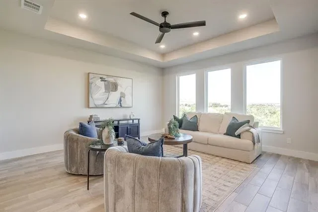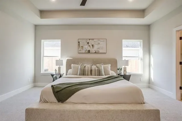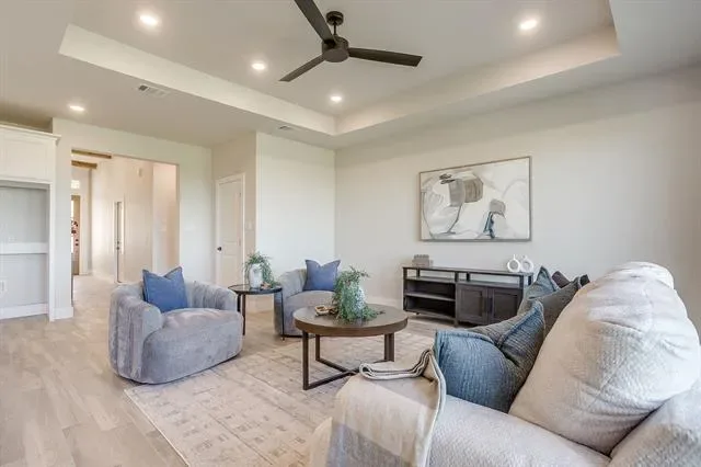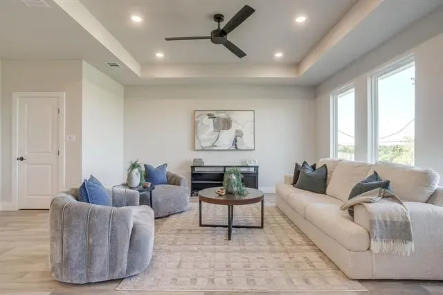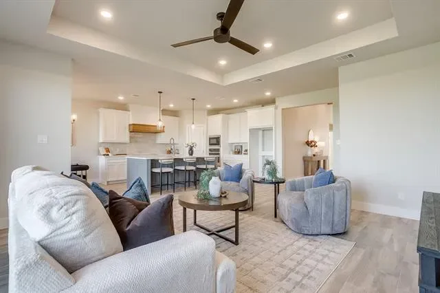 Modern, bright, and move-in ready! This 3 bedroom, 2 bath all-electric home offers 1,718 sqft of stylish living space with an open-concept design, tray ceilings, and a stunning kitchen featuring quartz countertops, custom cabinetry, and a large island. Enjoy natural light throughout and a private backyard with no rear neighbors. Conveniently located near major highways, shopping, and dining, this home checks all the boxes. Schedule your visit today. This one will not last long.