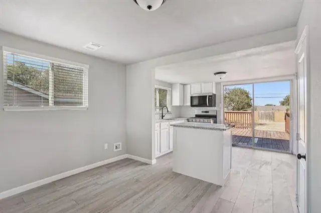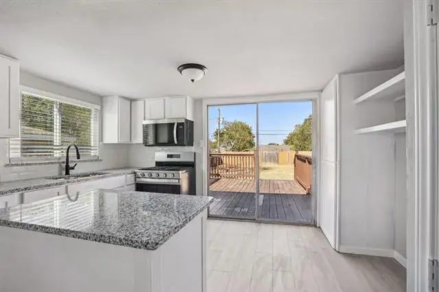 Beautiful RanchStyle Home completely remodeled and move-in ready with 2 bedrooms, 1 bath. Large living area with porcelain tile and fully waterproof laminate in the kitchen and hallway. New granite countertops and white cabinets. This home has a huge backyard with a pull-through driveway, great for parking cars in the back. This home has a new roof. New central Air conditioning unit. This home is great for family enjoyment. This home features an open layout with modern finishes throughout. A spacious kitchen features a large island, granite countertops, white cabinets, and stainless steel appliances. Sliding doors open to a large and new wood deck overlooking a huge fenced backyard — perfect for entertaining—updated bath with designer tile, fresh paint, new flooring, and stylish fixtures. Conveniently located near I-820, shopping, and schools. This home has a huge backyard with a pull-through driveway, great for parking cars in the back. This property qualifies for FHA loans. A must-see!