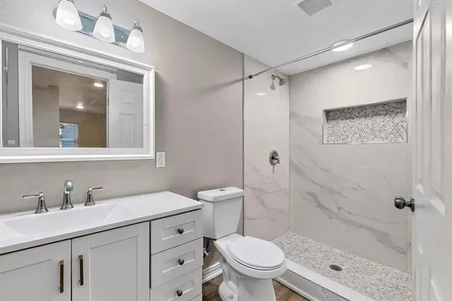 Charming Fully Renovated 3 bedroom 3 full bath home Priced To Sell. Renovations include all new plumbing, new electrical, all new windows, new roof, all gas plumbing are new. Master bedroom, laundry & pantry is an addition. Exterior and interior paint, new vinyl flooring throughout, new kitchen cabinets, quartz counters plus home has central heating and air and much more. Won’t last long!!!! Show and sell.