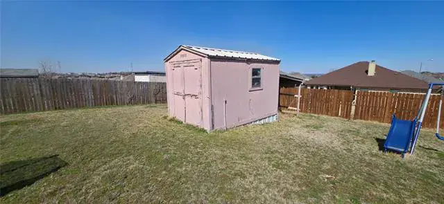 This inviting 3-bedroom, 2-bathroom home sits on a prime corner lot in White Settlement, offering a perfect blend of open-concept living and outdoor potential. The interior features a seamless flow between the spacious living room with its warm hardwood floors and a kitchen equipped with granite countertops and ceramic tile flooring, while plush carpeting in the bedrooms ensures a cozy retreat. Outside, the massive covered patio serves as the ultimate spot for entertaining, overlooking an expansive backyard secured by a wood privacy fence and maintained by a convenient sprinkler system. Strategically located near Lockheed Martin, NAS Joint Reserve Base, and Splash Dayz, this home also puts you just minutes away from the vibrant shopping and dining corridor along Bryant Irvin Road, featuring a wide variety of grocery stores and local restaurants. This is a fantastic opportunity to secure a large lot in a prime, central location.