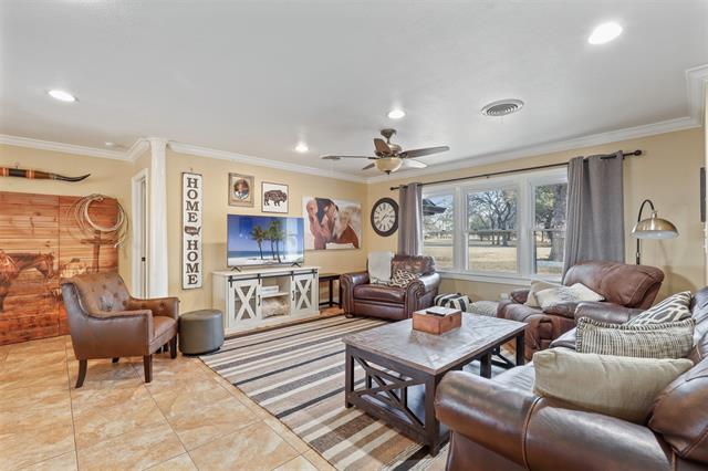 Perfect Country, City and Lake home all in one with full RV covered parking and hookups! Perched on a nearly full acre hill top lot with view and short walk to Lake Weatherford, this property has it all! The large open living room with front and back views gives you option for your design ideas. The bonus room could flex as an office or media room. Storage unit, covered patio, covered RV parking with hookups, additional parking space for your golf carts, bikes, or motorized water toys! Fully functional well and newly installed septic system. Roof 2020. Storm shelter. Choice of Aledo or Weatherford ISD. Minutes to shopping and city centers.