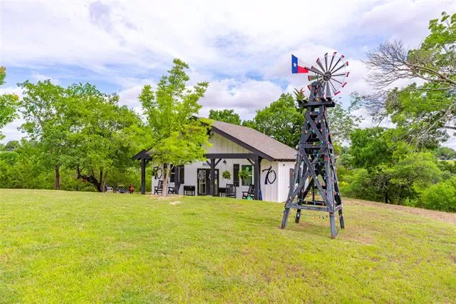 Motivated Seller!! Experience serene country living on this remarkable 2.3-acre property, where privacy, thoughtful design, and natural beauty come together seamlessly. The main residence welcomes you with a spacious open-concept layout, ideal for hosting gatherings or enjoying everyday living with ease. The home offers 5 bedrooms, 4.5 bathrooms, and a versatile game room that can effortlessly serve as an additional bedroom if desired. Outdoors, the expansive grounds invite both relaxation and recreation, with room for two horses and space to enjoy the open landscape. A picturesque pond, complete with a floating aerator fountain and stocked with catfish, perch, and crappie, enhances the setting. The backyard is a true retreat, featuring a sparkling pool, a calming fountain, and a dedicated dog run for pets. An inviting guest quarters, currently styled as a sports-themed entertainment space, adds flexibility for work, leisure, or hosting. The front and back yards are supported by a sprinkler system fed by well water, while the home itself is on city water with the option to easily convert to well water if preferred, offering both efficiency and versatility. Located just five minutes from Lake Weatherford Marina, with access to a boat ramp, dining, volleyball leagues, and shopping at the Shops of Willow Park, and only a mile from Squaw Creek Golf Course, this property delivers an exceptional balance of comfort, convenience, and the peaceful rhythm of country living.