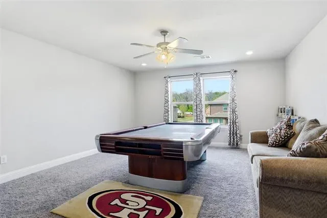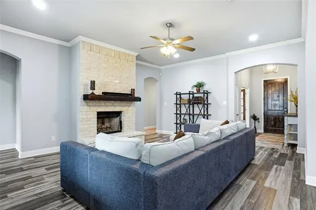 Welcome to this beautifully designed 4 bedroom home featuring a versatile flex room that can easily serve as a study or 4th bedroom, plus a large upstairs bonus room with a half bath—ideal for guests, a game room, or additional living space.The open-concept floor plan offers seamless flow between the kitchen, dining, and family room, creating a perfect space for entertaining. The family room is anchored by a cozy wood-burning fireplace, while the kitchen boasts granite countertops, a large center island, and ample workspace. The private primary suite is thoughtfully designed with dual His-Her vanities, a relaxing garden tub, and a walk-in ceramic tile shower. Granite countertops are also featured in the master bath and utility room, adding a touch of elegance throughout. Additional highlights include a functional mudroom with a built-in bench, a covered broom-finished concrete patio for outdoor enjoyment, and a fully landscaped yard complete with sod, sprinkler system, bushes, a tree, and a 6-foot privacy fence. Ideally located, this home is within walking distance to Willow Park North shopping, nearby parks, and scenic trails, and just one exit away from HEB—offering unmatched convenience for everyday living. With easy access to I-20, commuting and errands are a breeze. Don’t miss the opportunity to make this exceptional property your next home! *more photos coming soon*