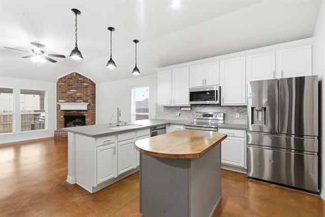 Holiday Special in the Aledo Bearcat ISD!! Enjoy this spacious 4 BEDROOM, 2 bath home with 2 LIVING areas along with an OUTDOOR KITCHEN in a very convenient location close to I-20 with close proximity to all the shopping needs, restaurants and schools one would desire. Elevated ceilings, attractive flooring, cozy fireplace, stainless steel appliances, and oversized back patio provide extra touches to make this home feel special. This family-friendly neighborhood includes a community pool and recreational courts to entertain the kids. The owners have made this home a Christmas, move-in ready scenario with all new paint, refurbished flooring, and inclusive appliances (refrigerator, washer and dryer) to allow for immediate enjoyment and transition. These budget friendly homes laid out for larger families in convenient areas are hard to find, so come take a look soon!