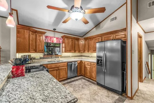 Tired of same old cookie cutter floorplans, this isn’t it! Venture into this unique multi-level home. First living room has huge stone fireplace for a morning cup of coffee by the fire. Second living room is massive. Kitchen has plenty of cabinets and granite counters. Primary bedroom has walk in closet and large ensuite bath with walk in shower. Bedrooms two and three with Jack in Jill bath. Back downstairs for bedroom four off the living room, then over to your private office. Now step outside to heavily treed yard on almost an acre. Not one but two circle drives. One in front and one that circles the house to provide ample parking. Sit out back on your deck under the shade trees. A huge 30′ by 40′ shop insulated with electricity and AC. Just seconds from I20 for easy access to work, HEB, Costco, restaurants, and anything else you could want. Only 10 minutes from lake Weatherford. Highly desired Aledo ISD. Don’t let this opportunity get away!